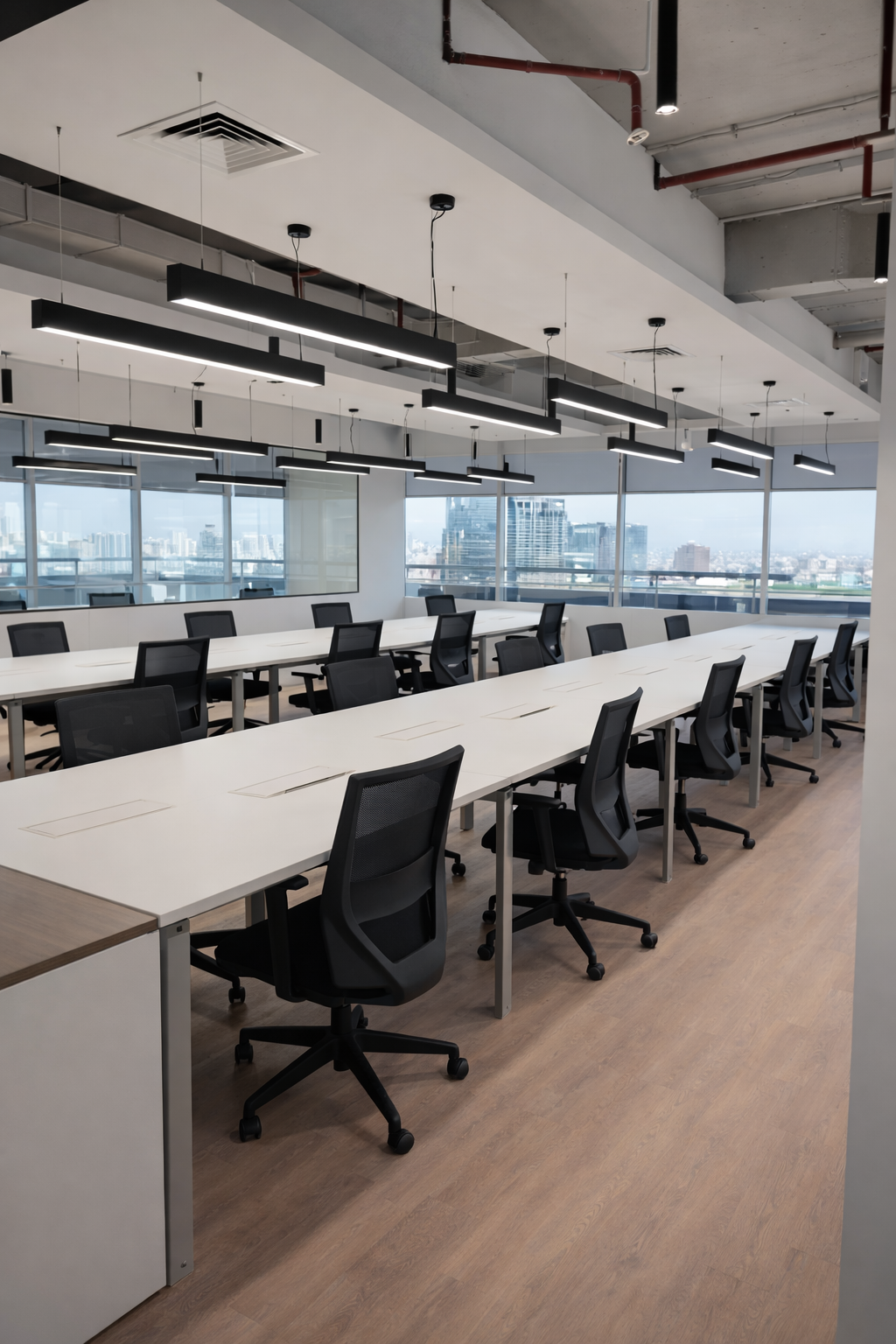 Estaciones, cableado, guardado, circulación, salas de reunión.