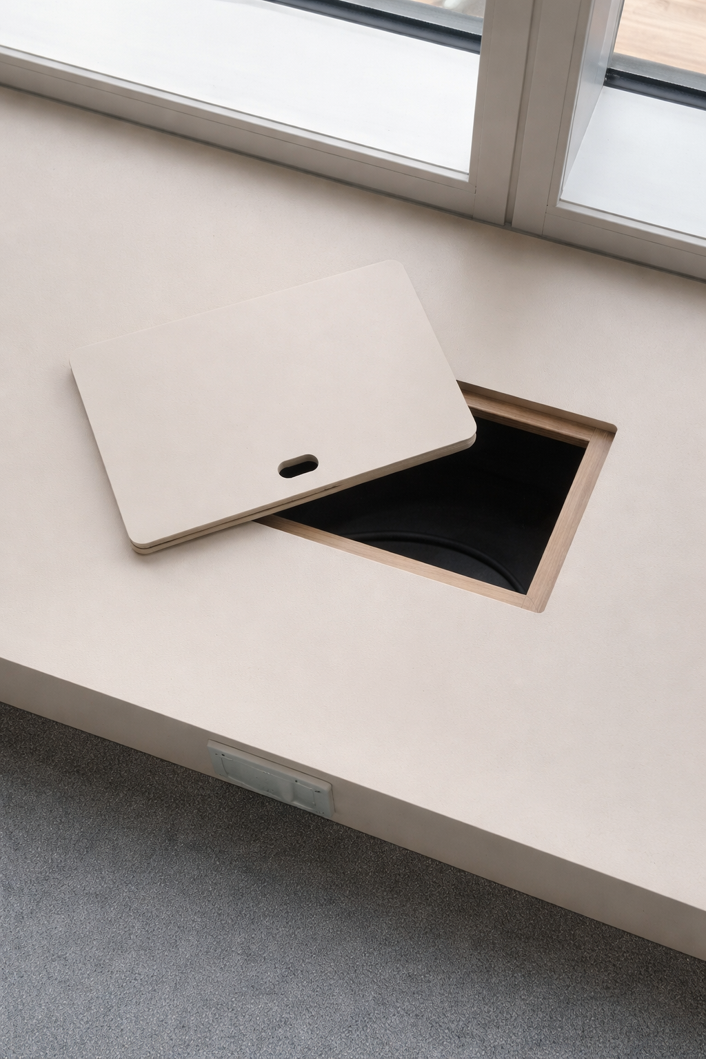 MorenoBize fue invitado a colaborar en la fabricación de muebles especiales para esta habilitación. Al tratarse de piezas únicas, el trabajo exigió un alto nivel de dedicación: terminaciones precisas, fabricación detallada y, en algunos casos, ajustes e instalación in situ por la forma y dimensiones de los elementos. Dentro del proyecto se desarrollaron soluciones como muebles técnicos para sala audiovisual, bancas integradas en perímetro de ventanales con registros, mesones y superficies largas de apoyo, un auditorio interior en madera con gradas, además de mobiliario complementario y áreas de apoyo como kitchenette.